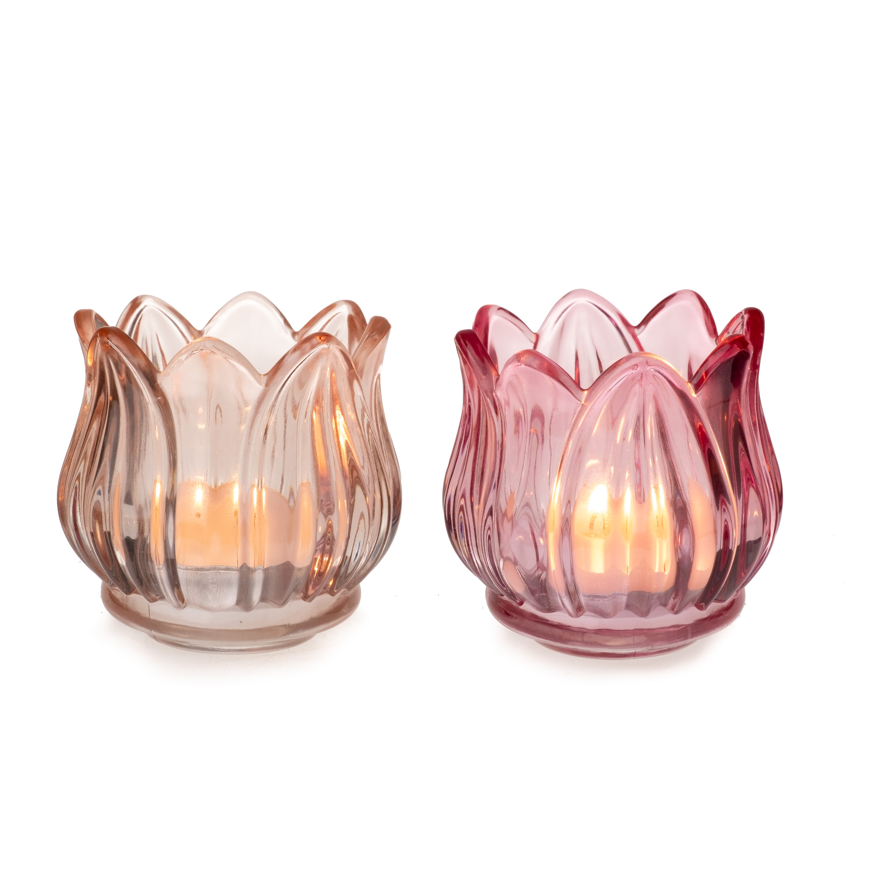 2 asstd. tealight holder 'Tulip Flower', pink/hot pink, approx. 8,5 Ø x 7,5 cm h glass