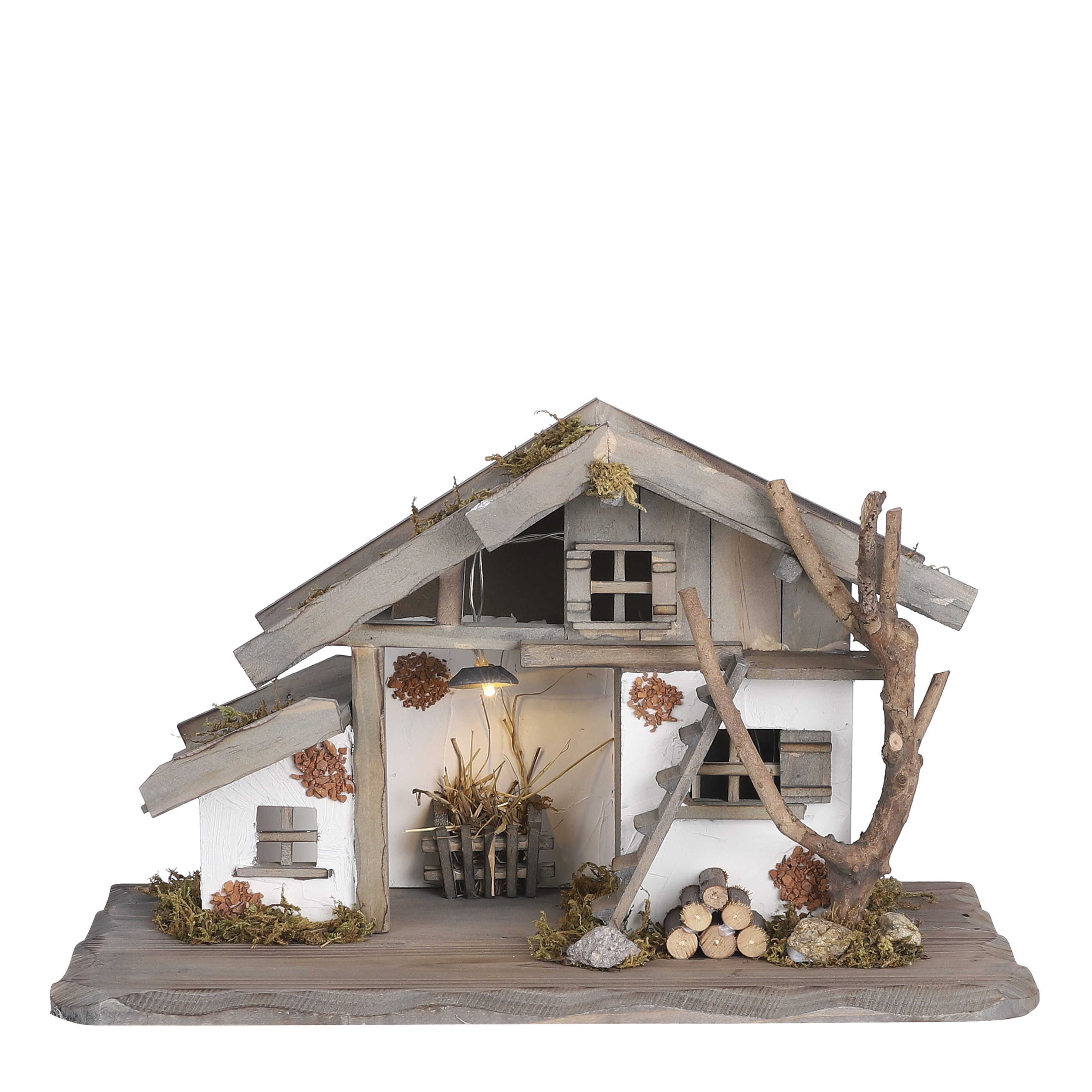 Ancient village schuur grijs werkt op batterijen - l39xb19xh23,5cm