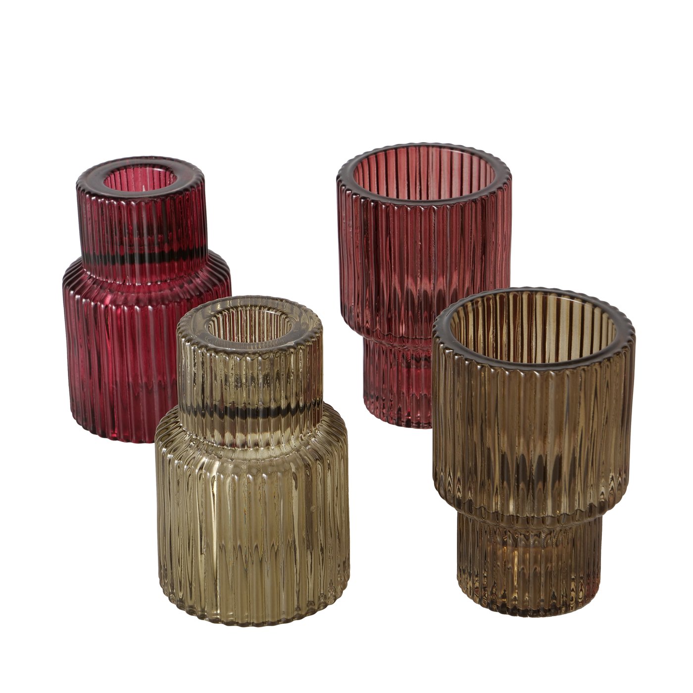 Candle holder Atil, 4 ass., Round, H 8,50 cm, Glass laquered, Dark red, Green, Light green glass laq