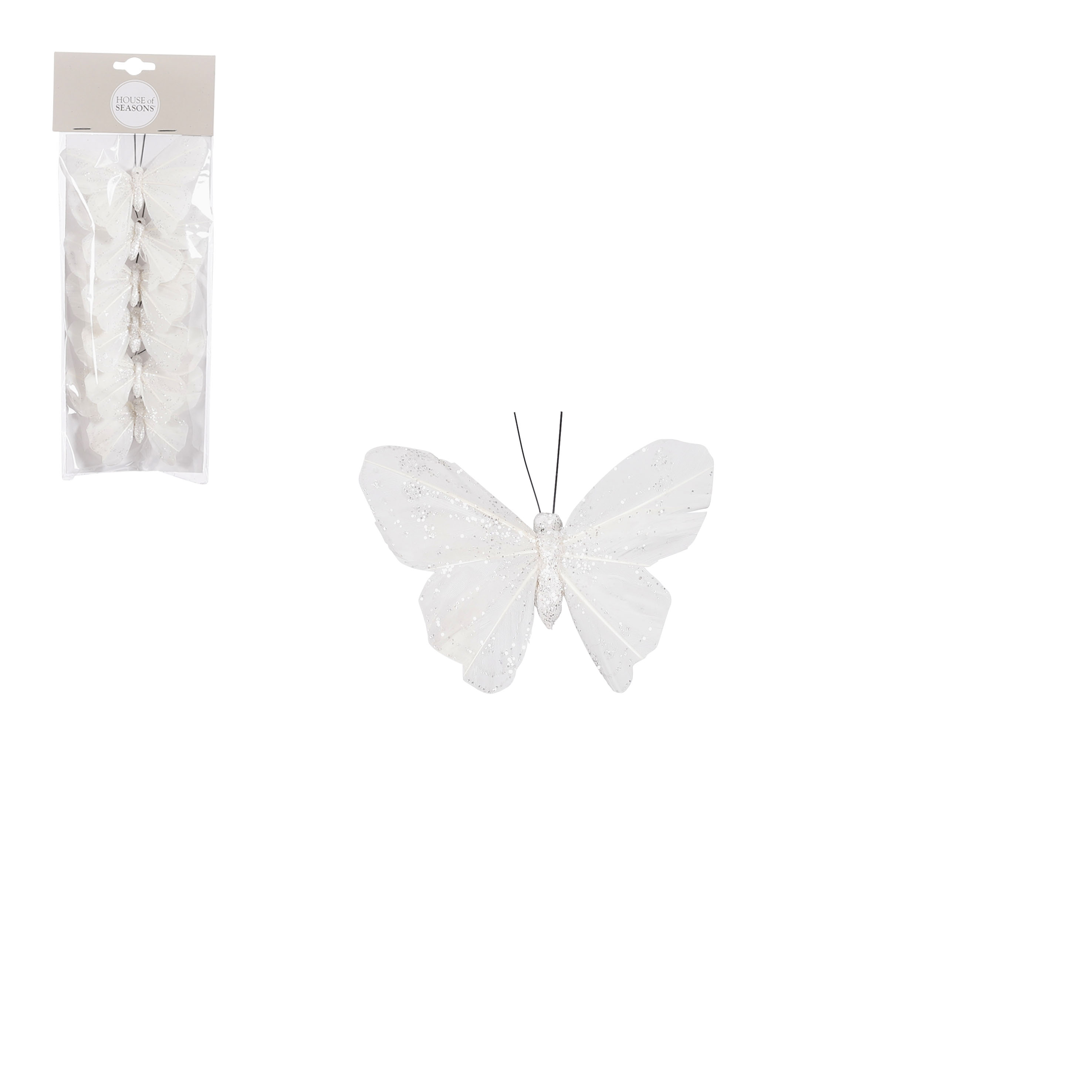 Clip vlinder wit 6 stuks - l10xb7xh2,5cm