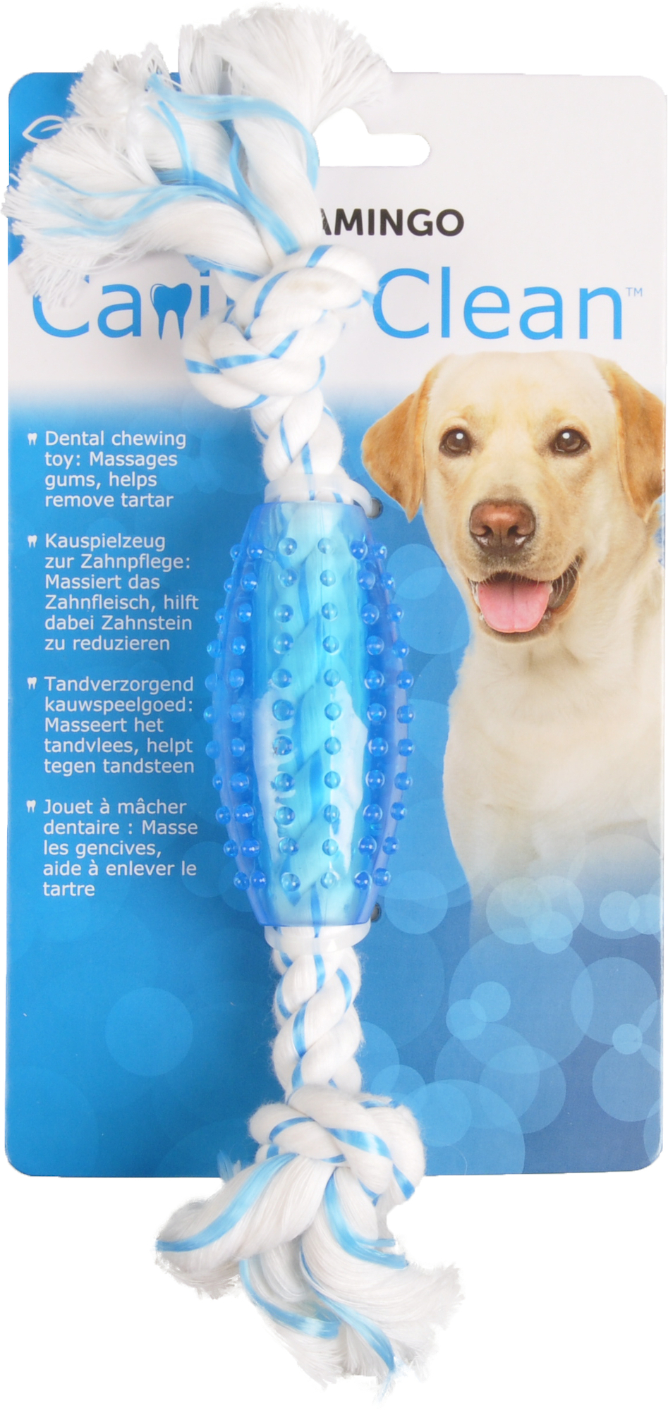 Speelplezier en gezonde tanden voor jouw hond? Dat kan met dit leuke hondenspeelgoed! Het Dental touw zorgt voor extra hygiëne en een frisse adem. Het speelgoed bestaat uit een touw en TPR.