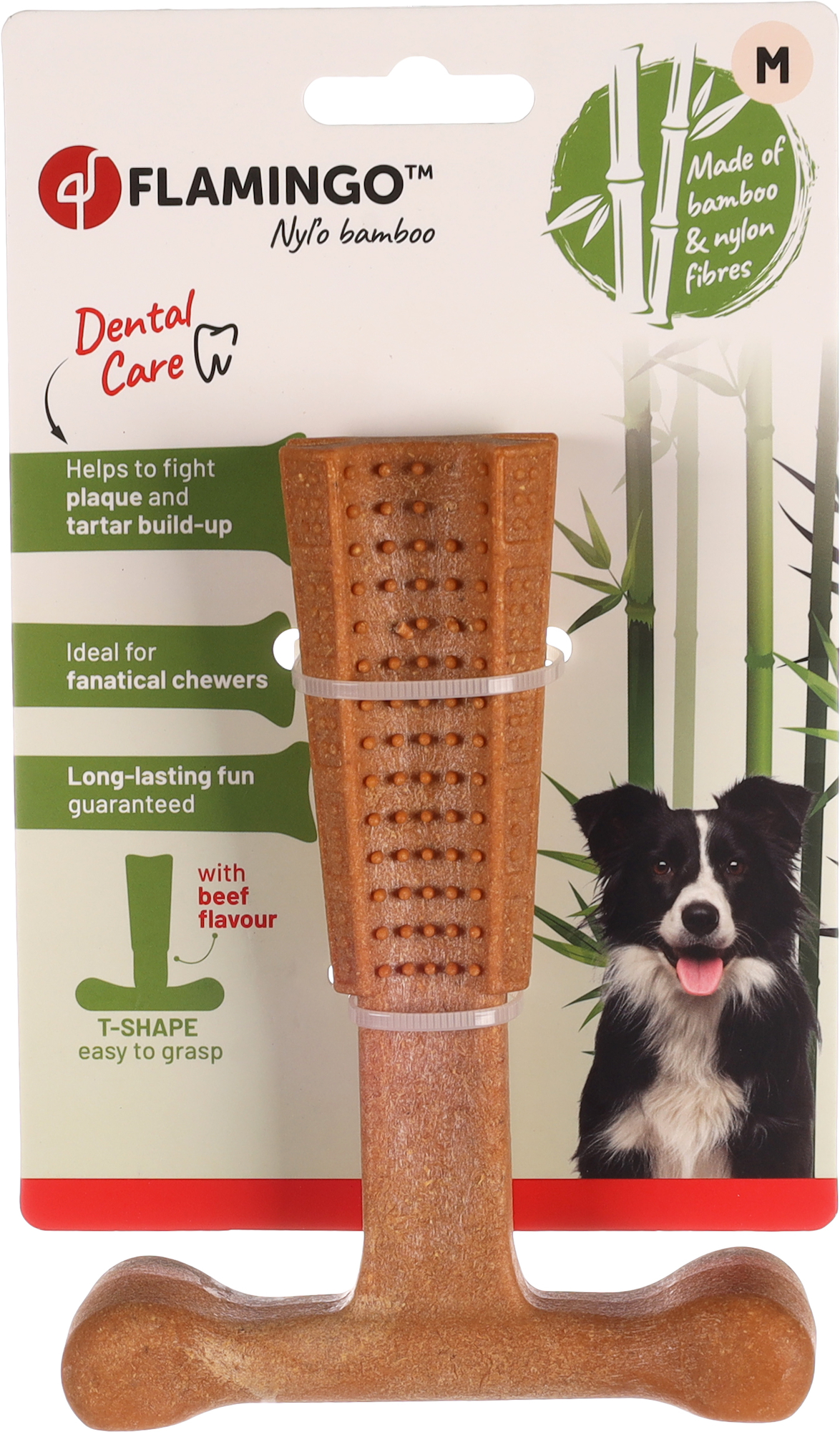 Dit Nyl'o Bamboo T-Bone speelgoed voor honden is gemaakt van bamboe en nylon. Het heeft een heerlijke rundvleessmaak en helpt tandplak te voorkomen en het tandvlees te masseren. Perfect voor enthousiaste kauwers!