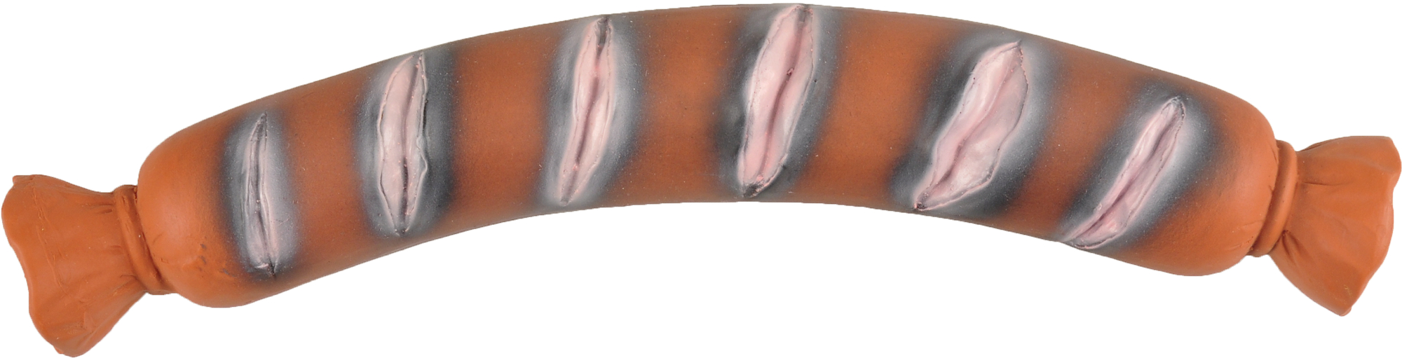 Deze speelgoedworst is gemaakt uit latex met een vulling van katoen. Er zit een squeaker binnenin voor extra speelplezier.