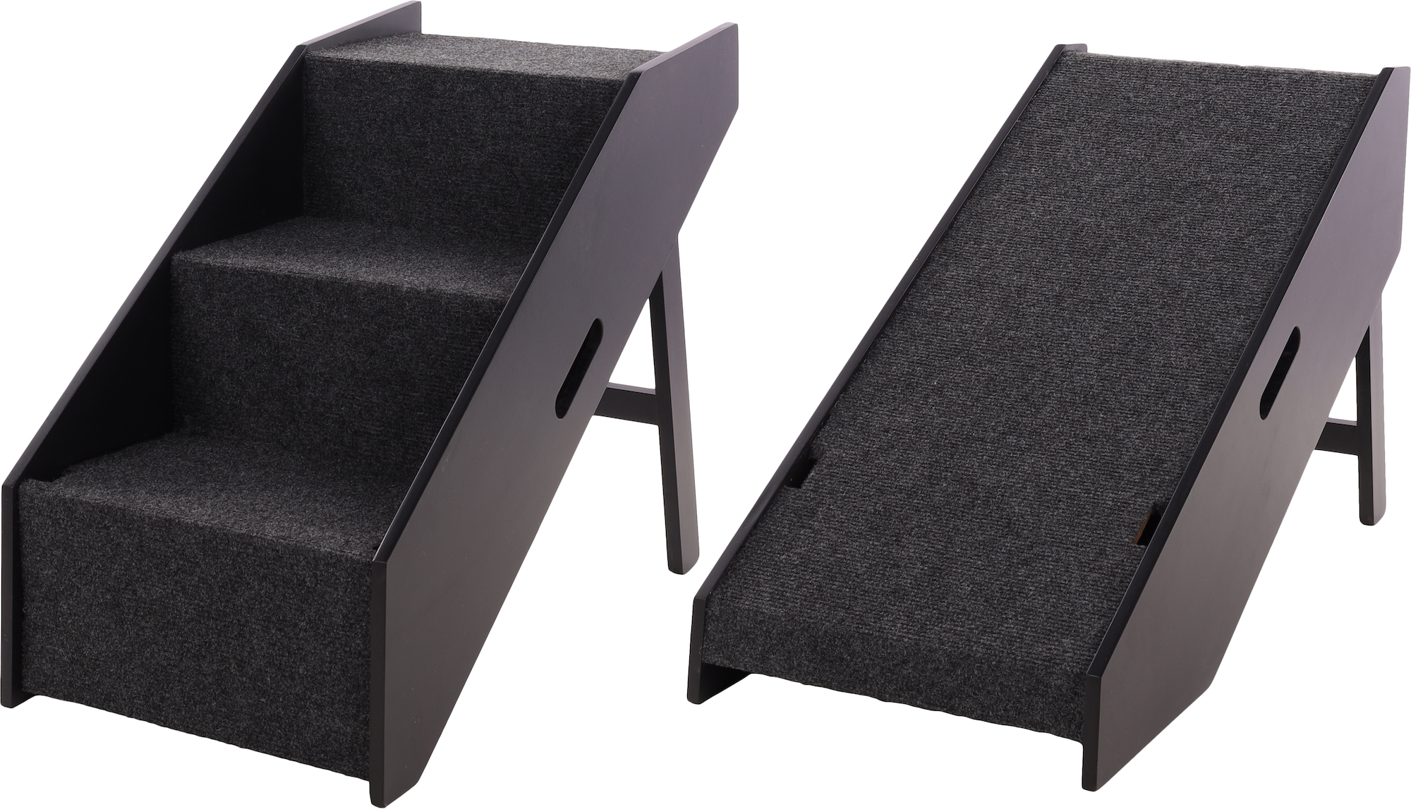 Makkelijk op te stellen hondenloopplank uit MDF met antislipbodem. Het 2 in 1 systeem zorgt ervoor dat je het zowel als loopplank en als trapje kan gebruiken. De plank is een opvouwbare op- en instaphulp met 3 treden voor honden tot maximum 40 kg. Het is makkelijk te verplaatsen dankzij de 2 handvaten.