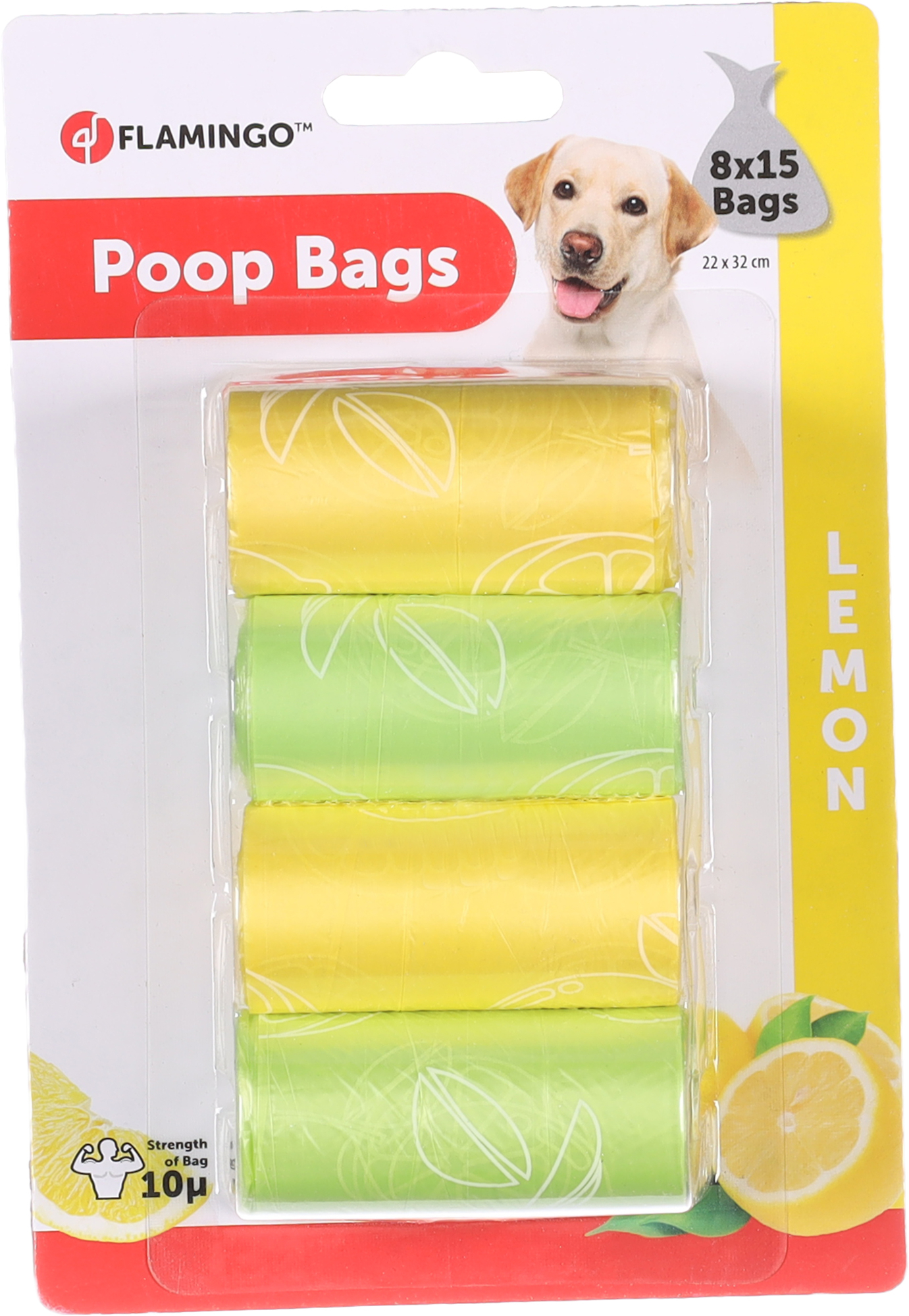 Met deze Poepzakjes Aibo Citroen hoef je je geen zorgen meer te maken over het opruimen van de ontlasting van je hond. De zakjes zijn gemaakt van PE kunststof en hebben een frisse citroengeur. In totaal ontvang je 8 rolletjes met elk 15 zakjes van 220 x 320 mm. Opruimen was nog nooit zo makkelijk en fris ruikend!