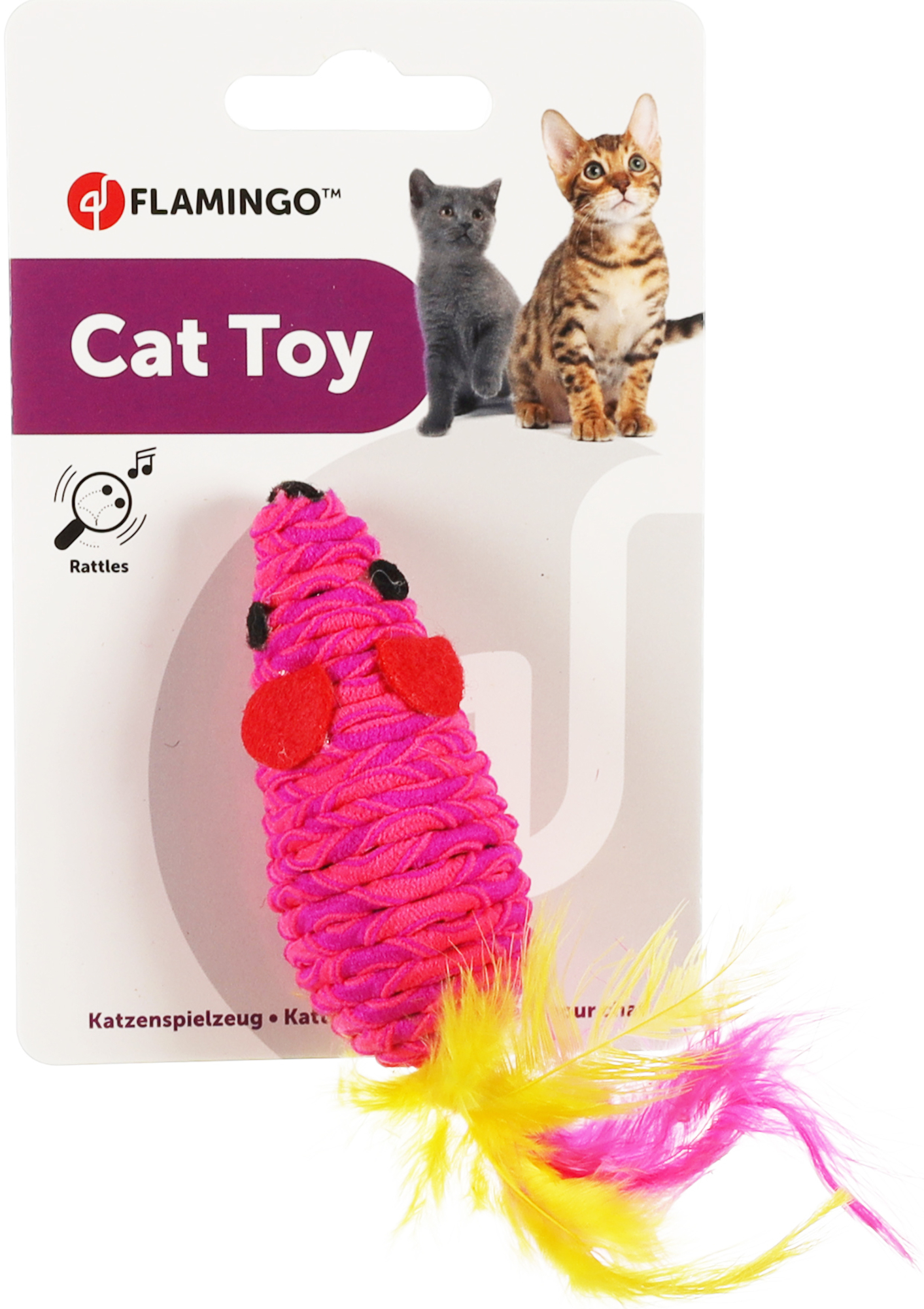 Dit speelgoed Shuka Muis Veer is perfect voor jouw kat! Gemaakt van stevig touw en met ratelend geluid en veren voor extra speelplezier. Beschikbaar in meerdere kleuren. Laat het spelen beginnen!
