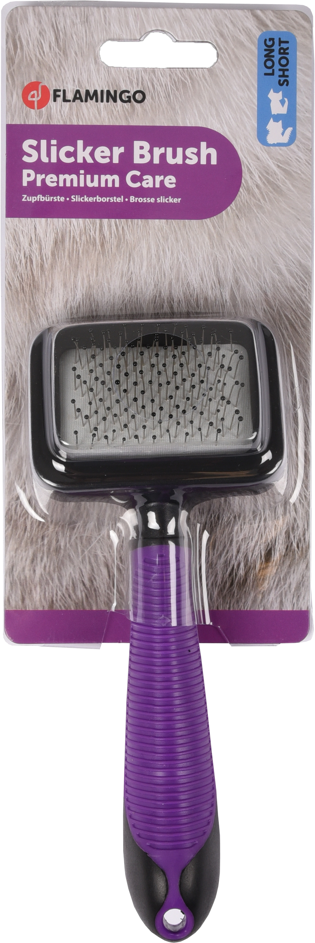 Deze slickerborstel is perfect voor katten met een korte of lange vacht. De flexibele pinnen ontwarren knopen en masseren de huid voor een betere bloedcirculatie. Met het rubberen handvat heb je altijd een goede grip.
