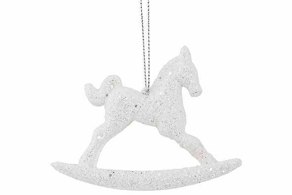 HANGER ROCKING HORSE GLITTER WIT 3X10X8CM KUNSTSTOF