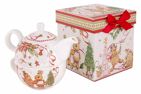 Giftbox tea for one cookie rood/wit 14x14x15cm