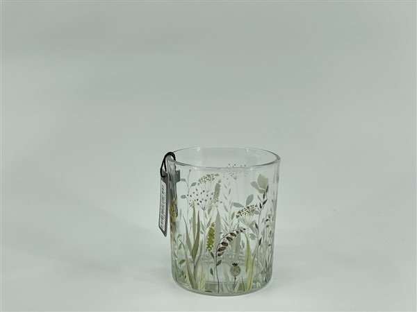 Glass candle holder w/clear&decal 8,8*8,8*h10