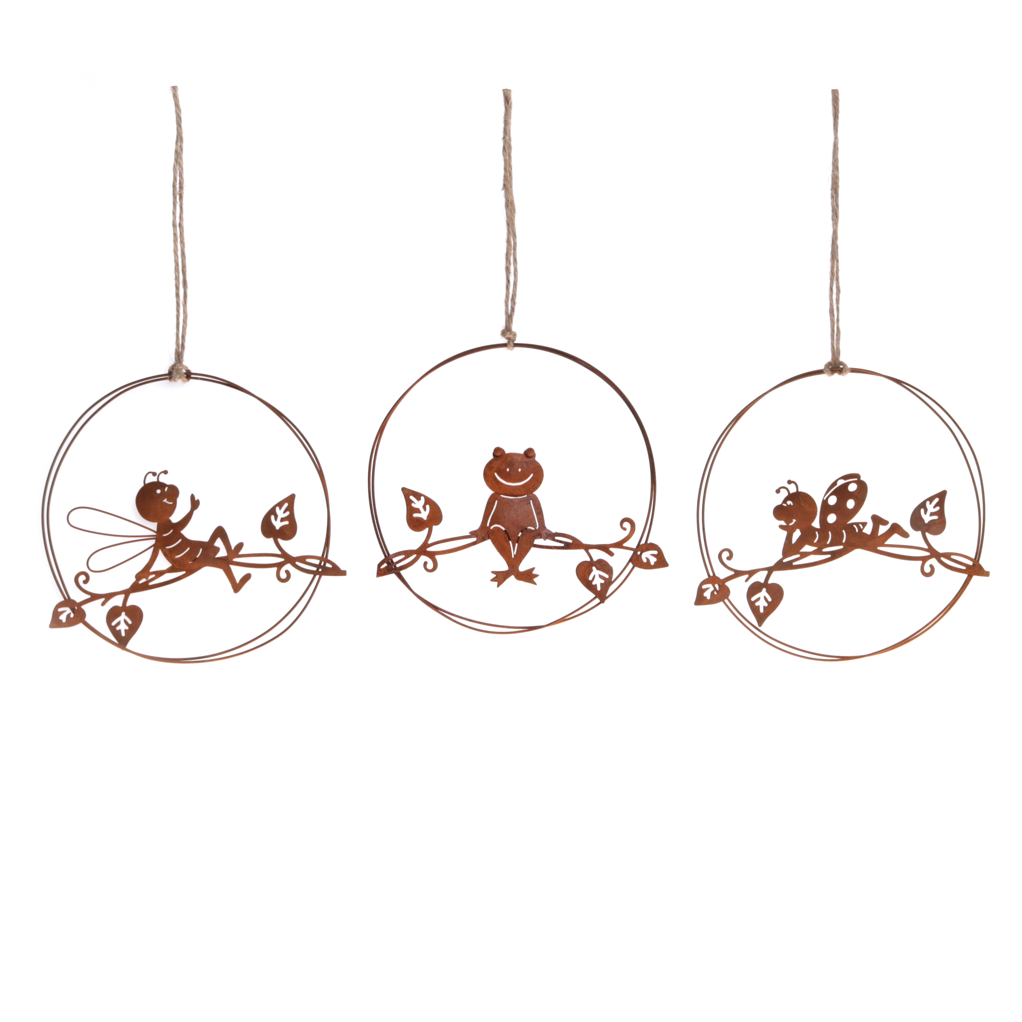hanger garden, 3 assortd., rust, metal, ca. Ø 12,5 cm
