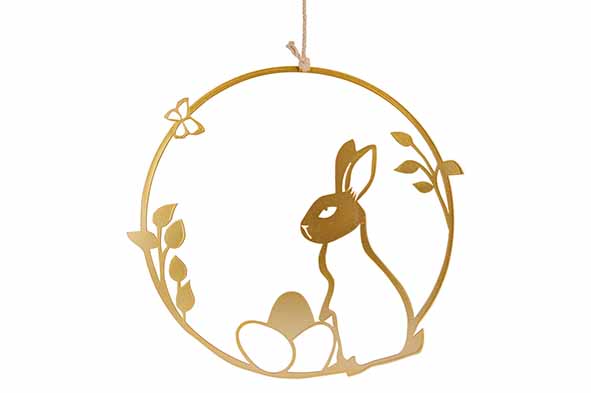 HANGER RABBIT EGGS&FLOWERS GOUD 25X5X25 ROND METAAL