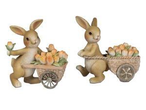Hase mit Karre 2sort. 11x12cm aus Kunststein, handbemalt