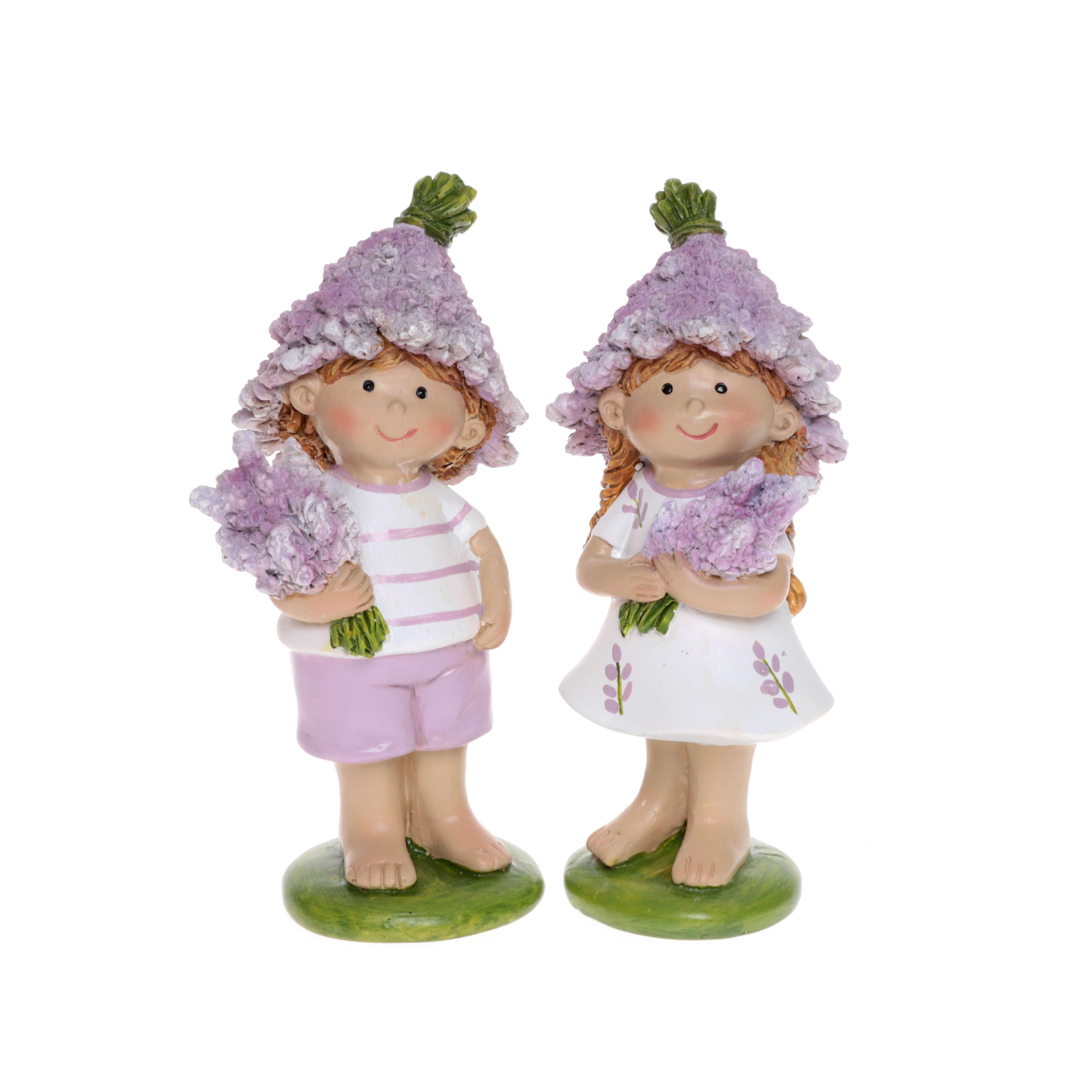 lavender kids, 2 asstd., white/purple, polyresin, ca. 7,5 x 5,5 x 14,5 cm h
