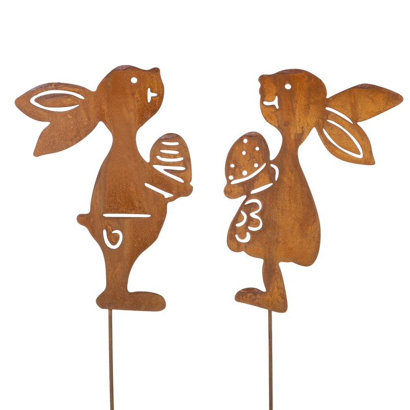 metal pick 'rabbit', 2 ass. natural rusty, approx. 18 x 25/58 cm l