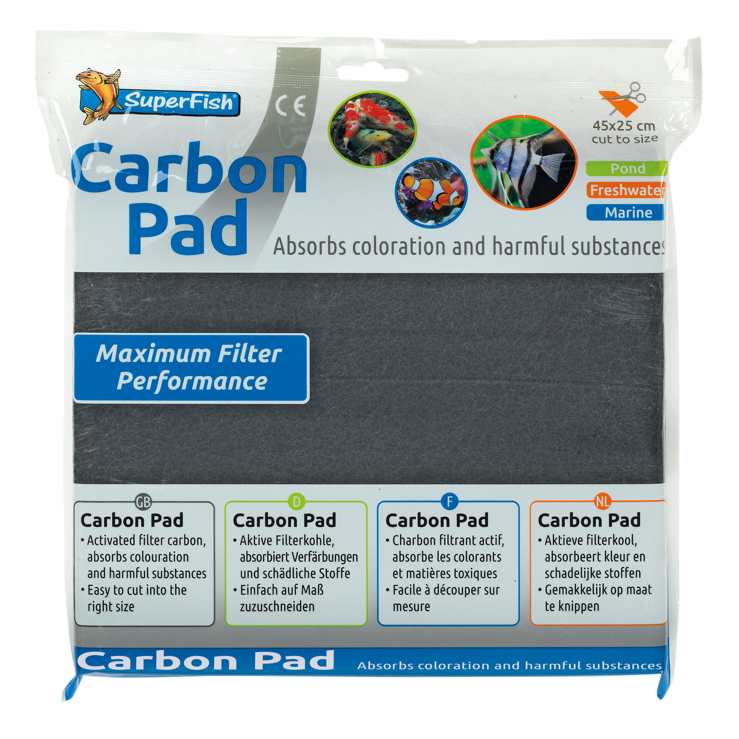 Actieve kool mat, Absorbeert kleur- en giftige stoffen uit het water terwijl de pH-waarde neutraal blijft. Het resultaat: helder en gezond water.