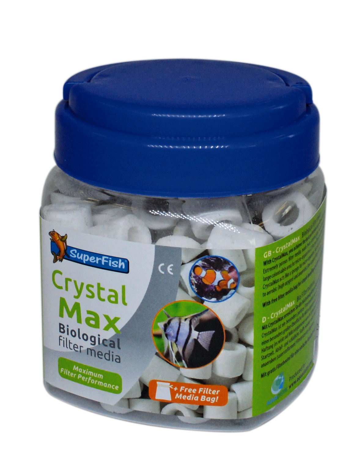 rystal Max is een uiterst poreus filtermedium gemaakt uit glas met unieke eigenschappen en een extreem groot oppervlak voor micro-organismen (275m2 per liter inhoud).