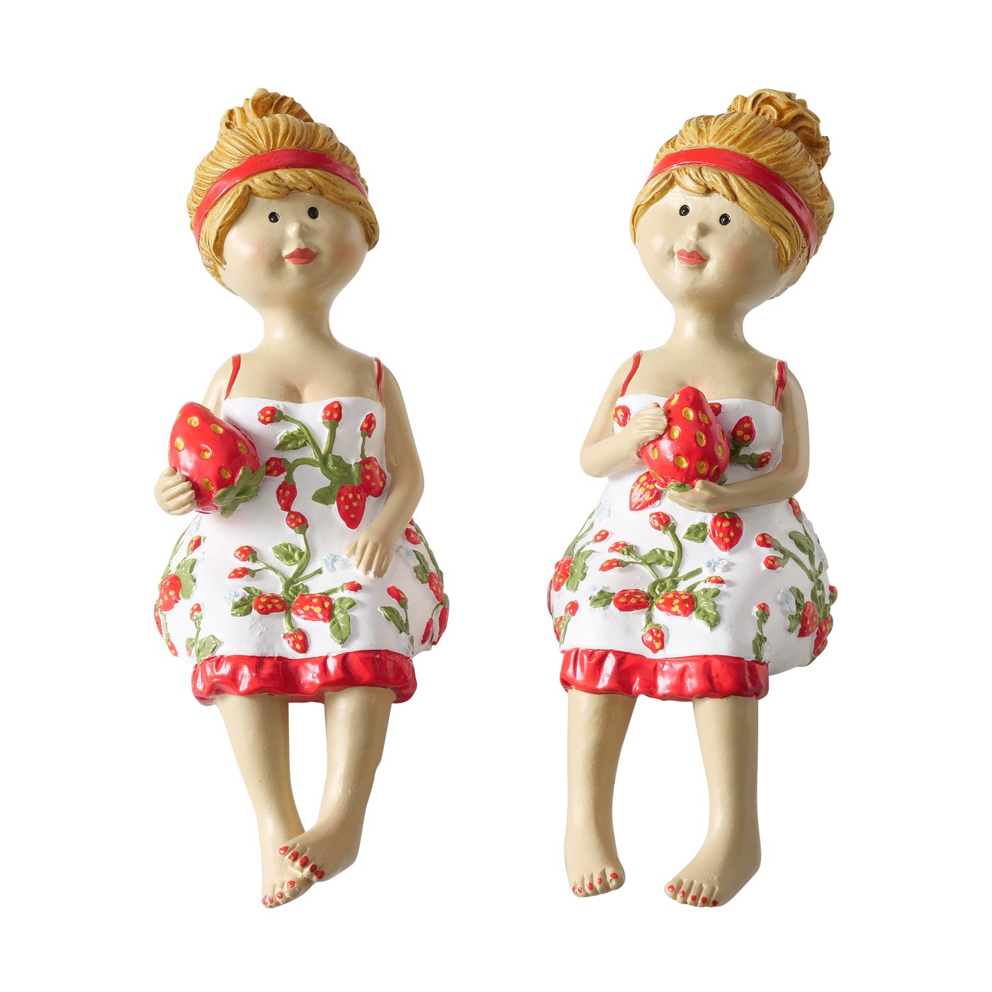 Shelf sitter Emily, 2 ass., Woman, Strawberry, H 16 cm, Polyresin, White, Beige polyresin colour-mix